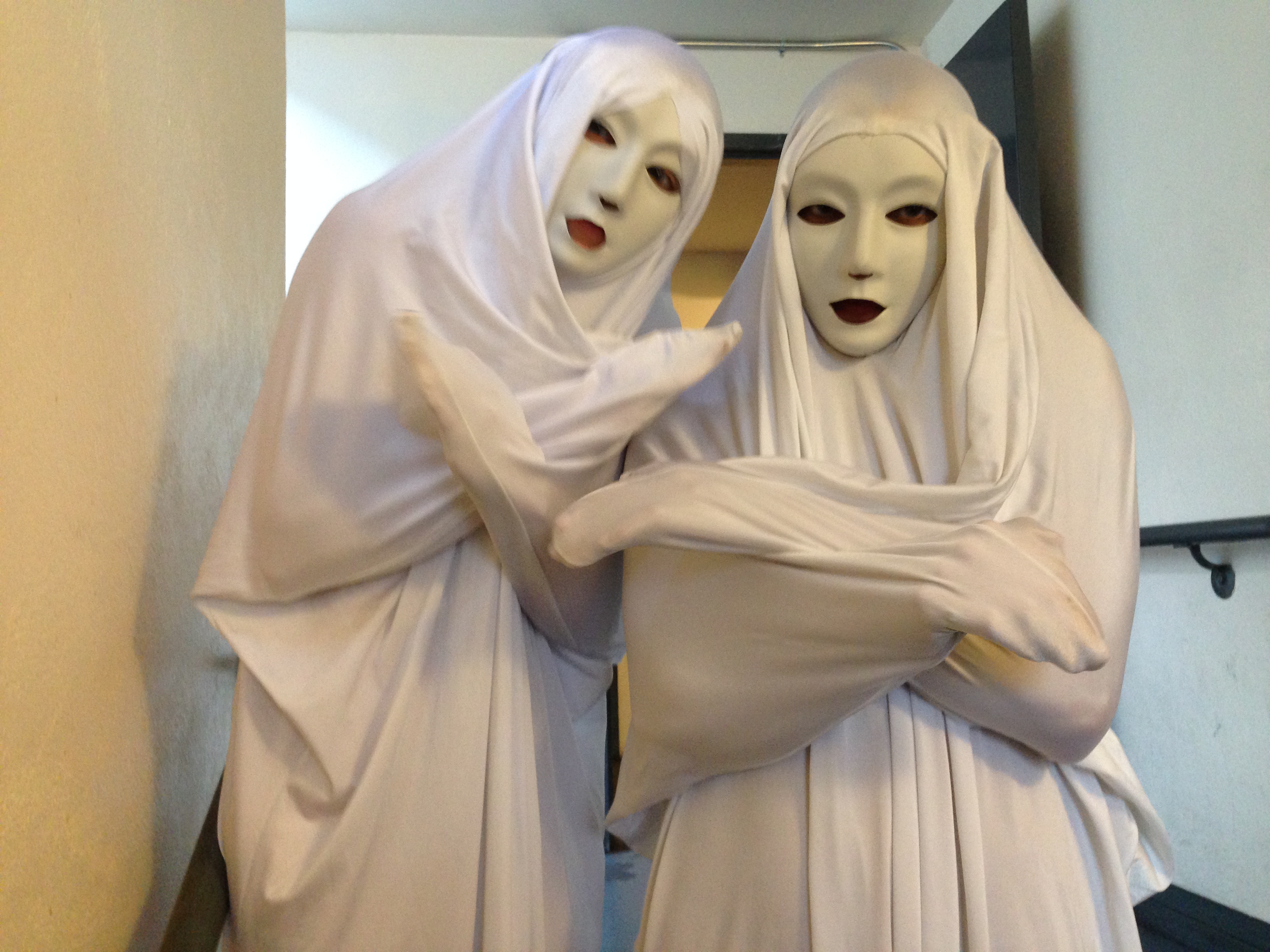 These two characters wandered between the guests before the movie. They were wonderfully macabre: