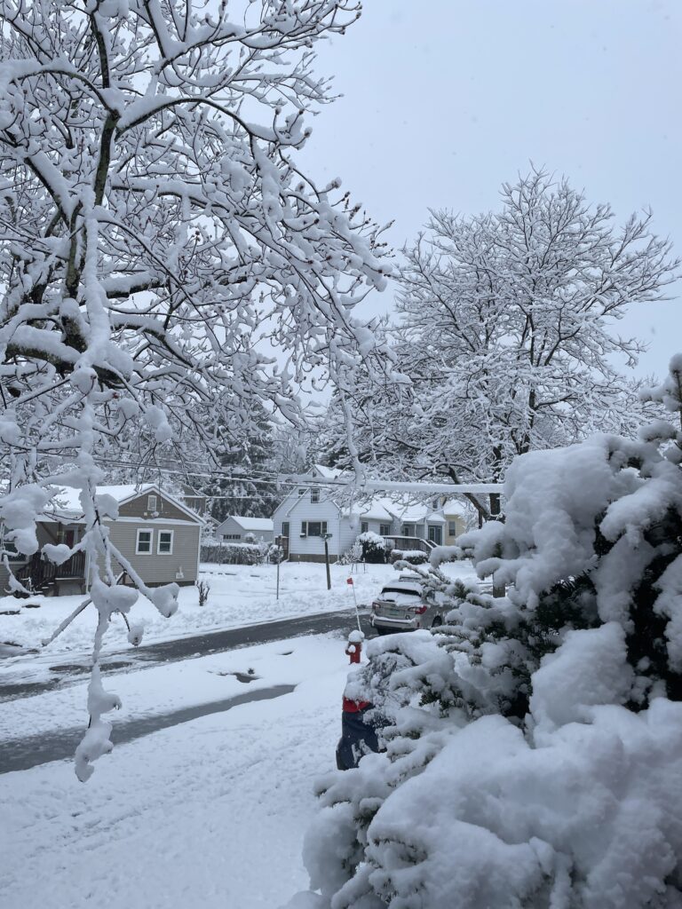 Confounding all expectations, the weather in Vermont cooperated to produce a stunning sunny day for the total solar eclipse of April 8th, 2024. This was even more surprising given that 4 days before, this was our street: