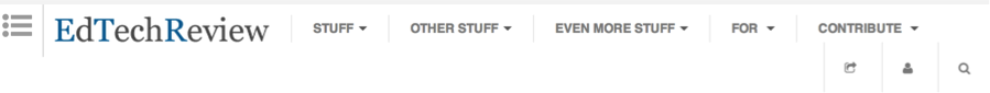 Our application interface is built in HTML5, JavaScript, and CSS. We built using these technologies to work within the parameters of the open web, and to make the program run on as many platforms as possible. Because of this, the markup can be modified by anyone with sufficient knowledge of web technology and a browser with dev tools. For instance, I can modify the EdTech Review navigation using the Chrome Developer tools and take a screenshot: