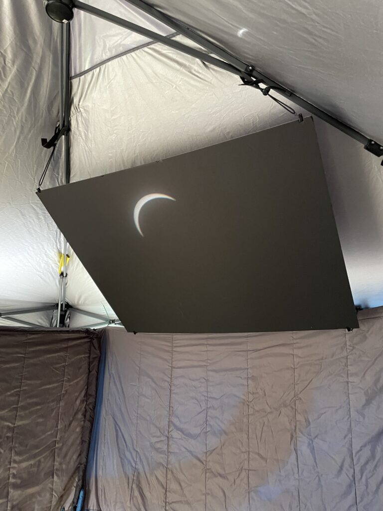 I set up a tent/booth to project the eclipse onto a dark board to observe the progression of the moon across the sun: